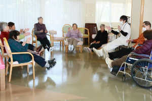 健康チェックが終ったら、椅子に座って出来る体操を行います。早口言葉、頭の体操など、最初は難しいかもしれませんが、少しずつ頑張ってみませんか。小松崎病院では、利用者様の身体機能を検査、評価し、おひとりお一人にあったリハビリ(理学療法士による個別リハビリ)を行っています。